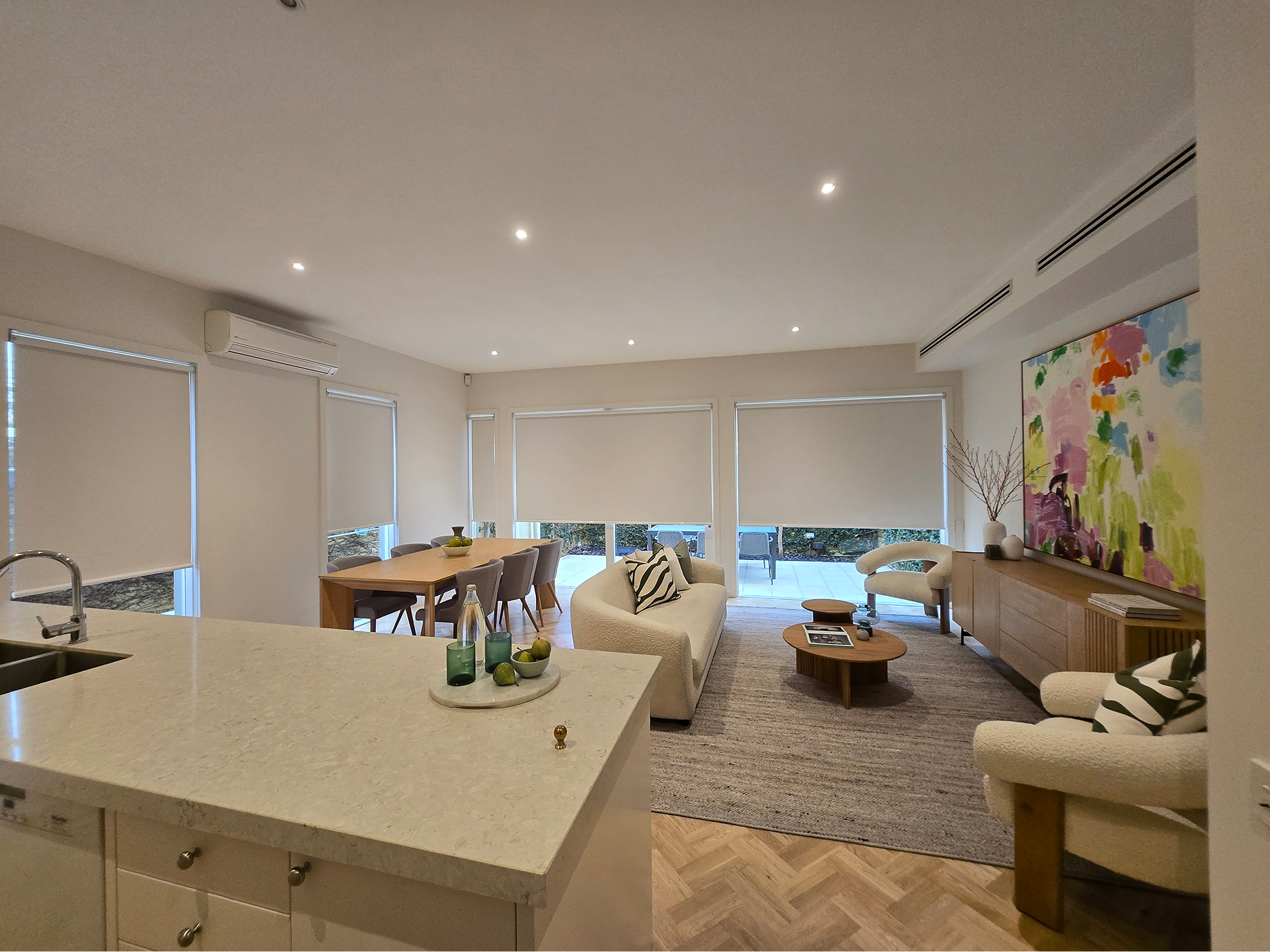 Custom roller blinds and sheer curtains installed in Melbourne east. Impeccable service and beautiful product. We couldn’t be happier with the whole selection and installation process!