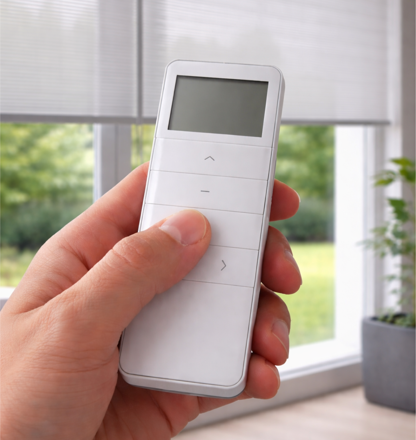 Motorised roller blinds provide seamless light control at the touch of a button. Ideal for large windows and hard-to-reach areas, they combine clean design with everyday functionality.
